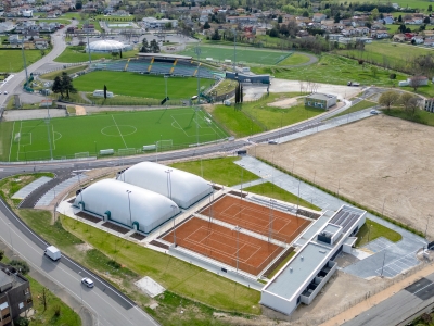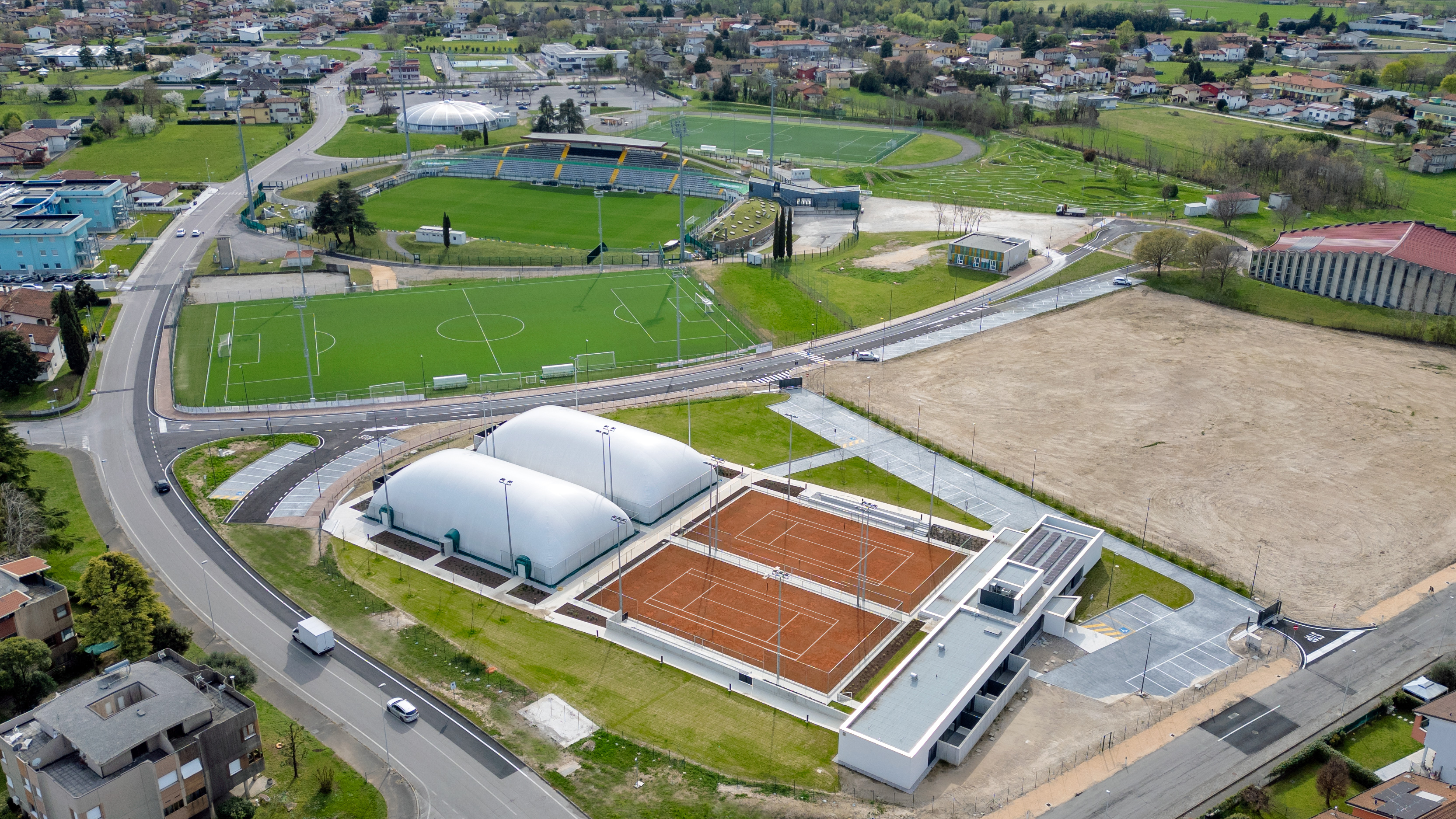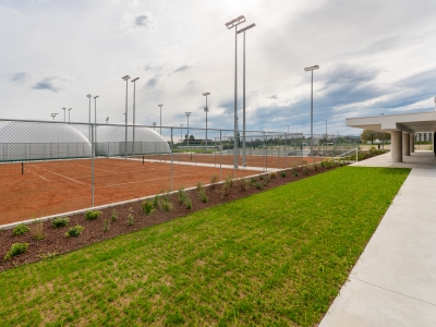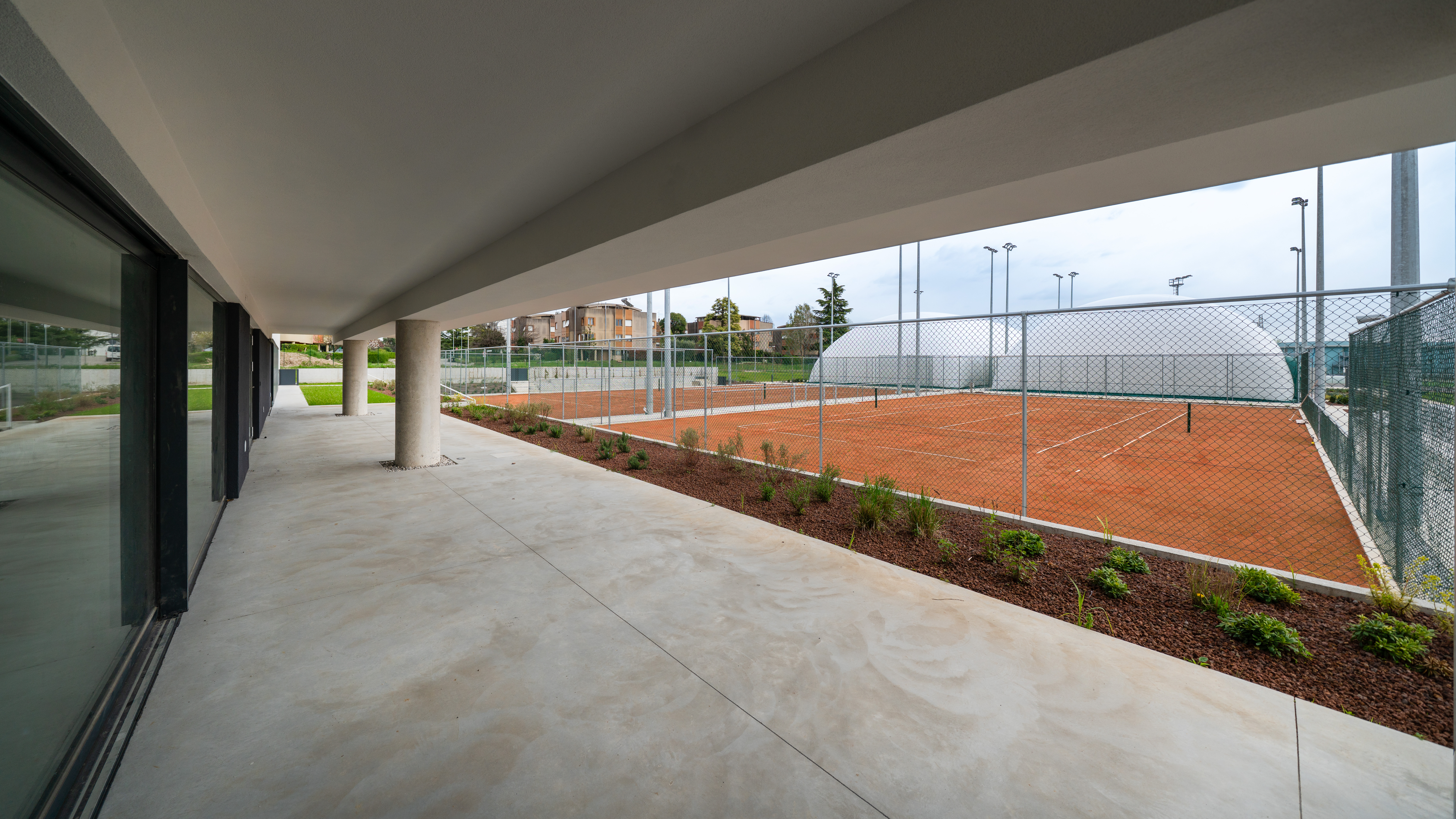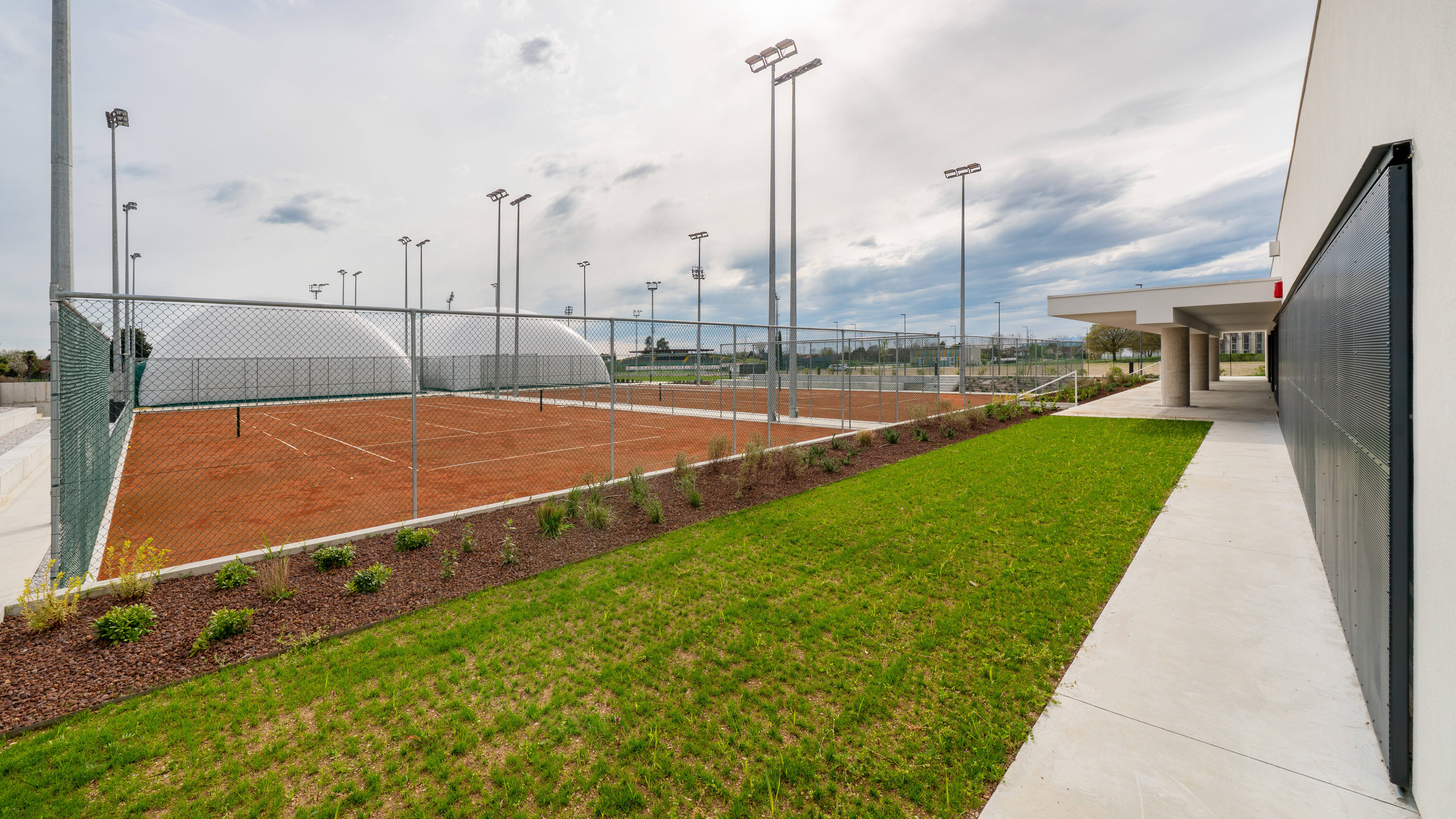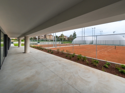 Il nuovo centro ospita 4 campi da tennis, di cui 2 coperti, oltre a spogliatoi, servizi igienici per il pubblico e un’infermeria. Completano l’intervento ampi parcheggi immersi nel verde e collegati da percorsi pedonali.